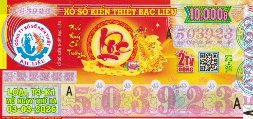 Mẫu vé số Miền Nam ngày 03/03/2026