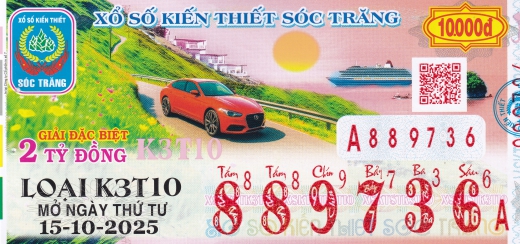 Mẫu vé số Miền Nam ngày 15/10/2025