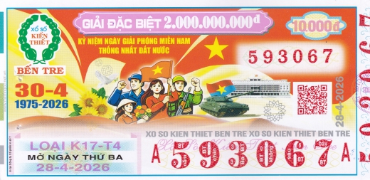 Mẫu vé số Miền Nam ngày 28/04/2026