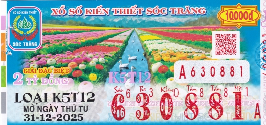 Mẫu vé số Miền Nam ngày 31/12/2025
