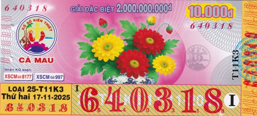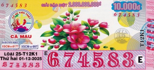 Mẫu vé số Cà Mau ngày 01/12/2025