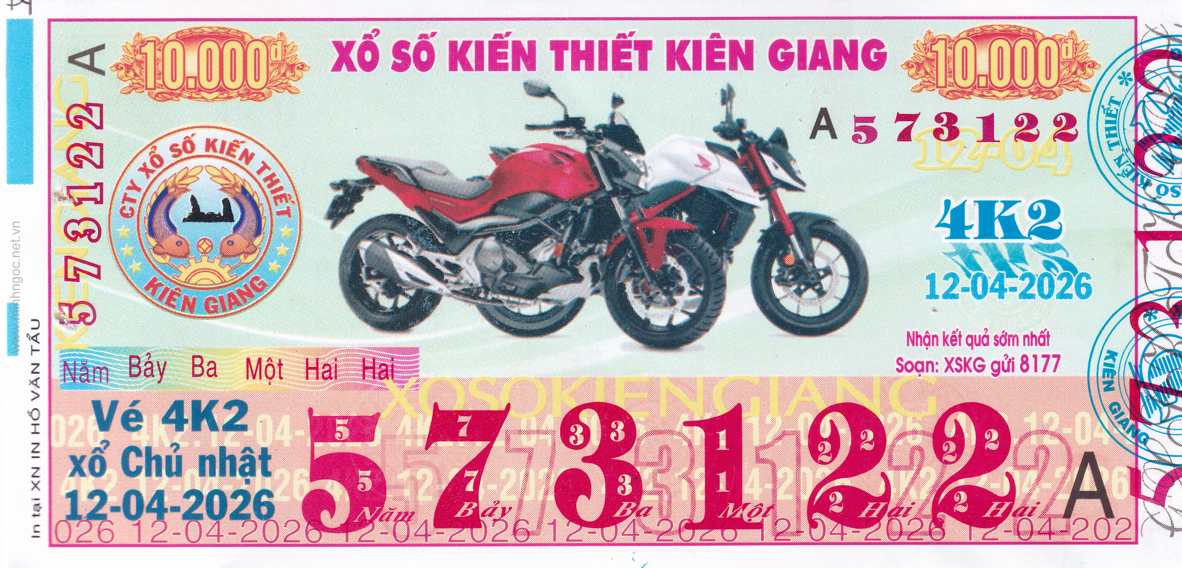 Mẫu vé số Kiên Giang ngày 19/04/2026