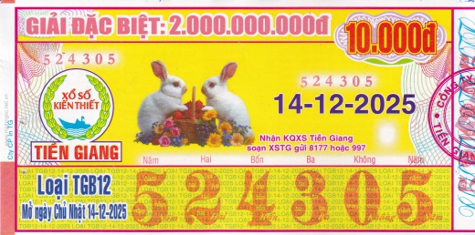 Mẫu vé số Tiền Giang ngày 14/12/2025